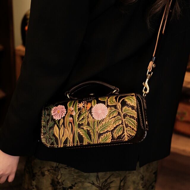 このハンドバッグは、印象的なクリムトガーデンデザインが魅力のラウンドコーナードクタースタイルで、日常のコーディネートにアートなエッセンスをプラスします。おしゃれでありながら収納力も優れており、必需品をしっかり収められます。