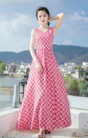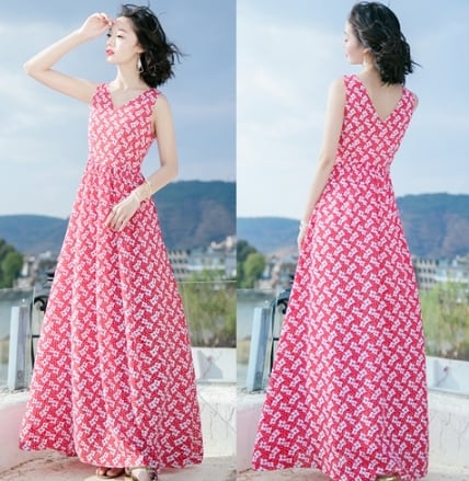 フラワー 小花柄 フレアー ロング ワンピース
