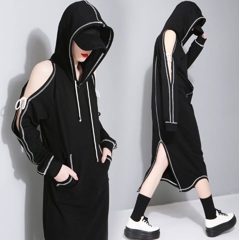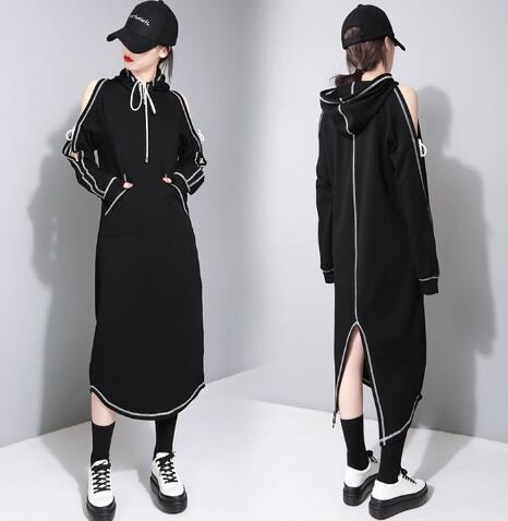 パーカーワンピース 肩出しワンピース ロングパーカー