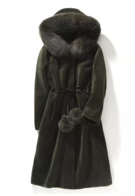 【高級感最高!!!】レディースロングコート 本毛皮 ウール100%★★★本物のキツネ毛皮の襟付き ★