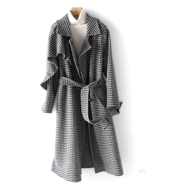高級・希少価値!!! 千鳥柄 ウインドブレーカー型 両面ウールコート レディース