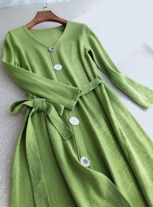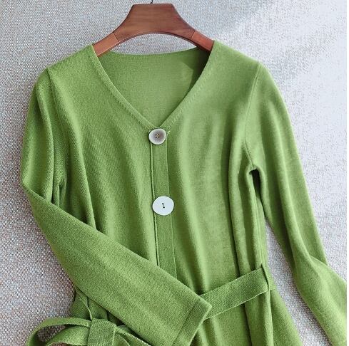 伸縮性抜群・快適 Vネックストラップウールワンピース ロングスカート ひざ丈