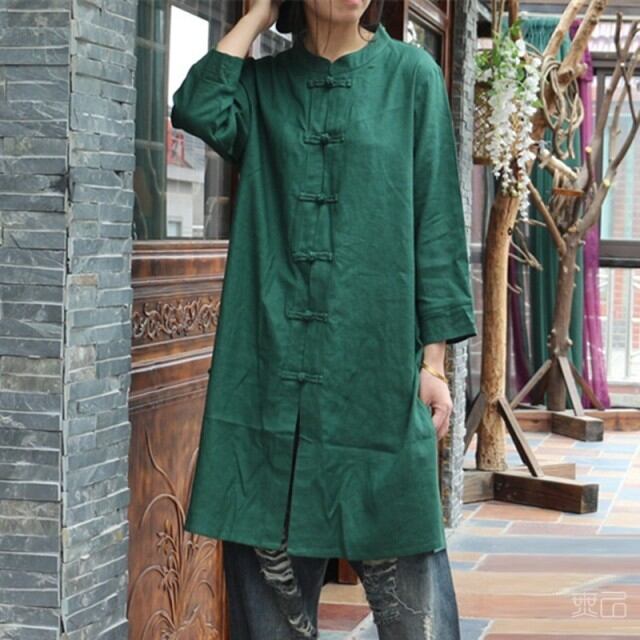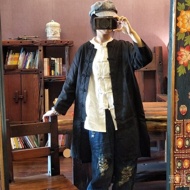綿麻七分袖シャツ19春夏新款薄外套復古国風唐装カジュアルたっぷりブラウス