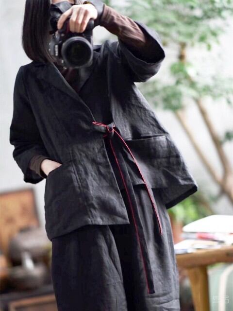 リネンのスーツレトロレース黒のジャケット