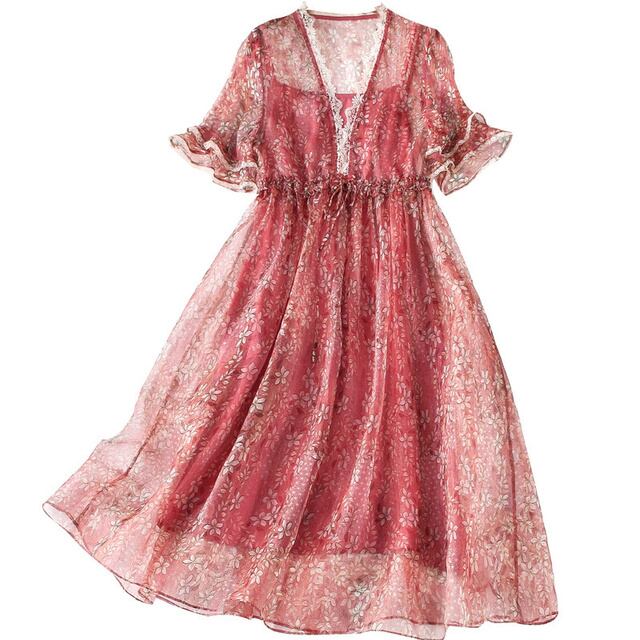 慕荷の花の真糸の桑の糸のワンピースの女性の夏の2020新型のスカートはゆったり