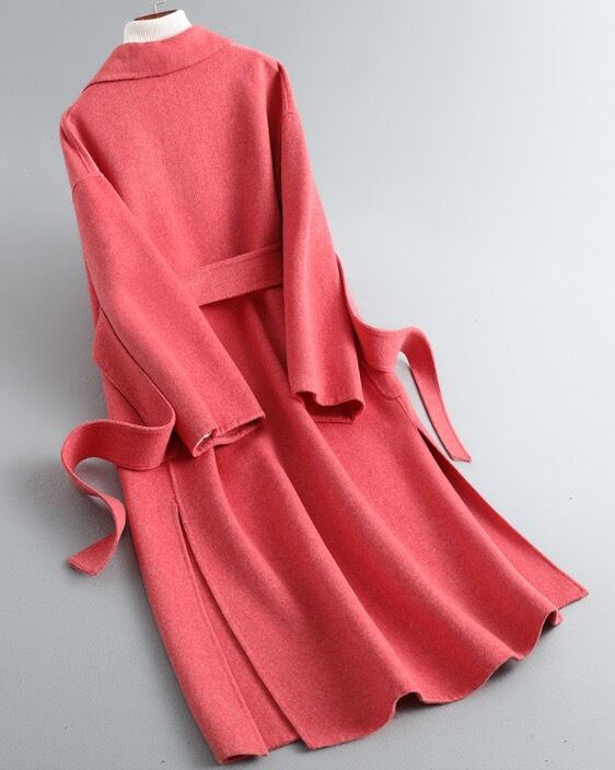 両面コートレディースミドル丈オーバーザニールーズタイウールコートファッショナブルなハイエンドウールコートバスローブ