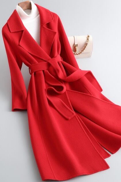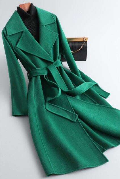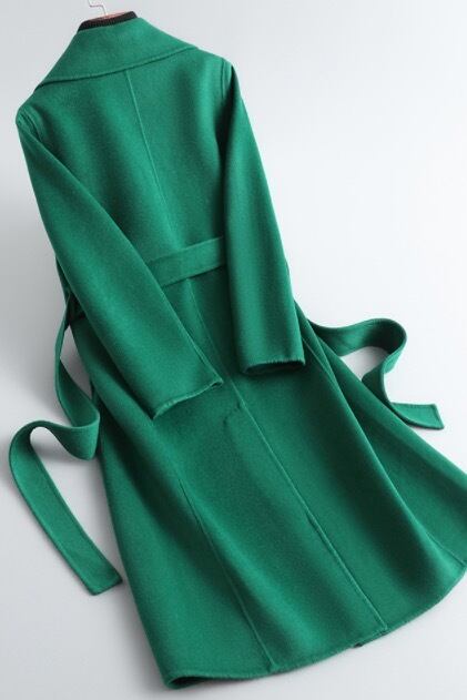 2021年秋新しい両面ウールコートレディースミドル丈オーバーザニースリムハイエンド無地ウールコート