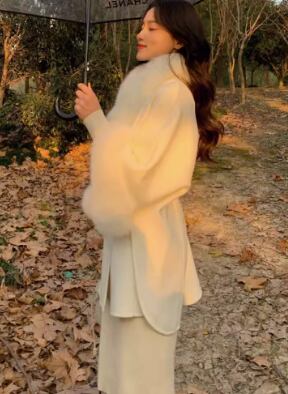 また、白い毛皮の襟が一気に高級感を演出し、コーディネートに華やかさをプラスしてくれます。