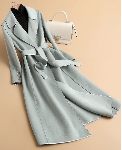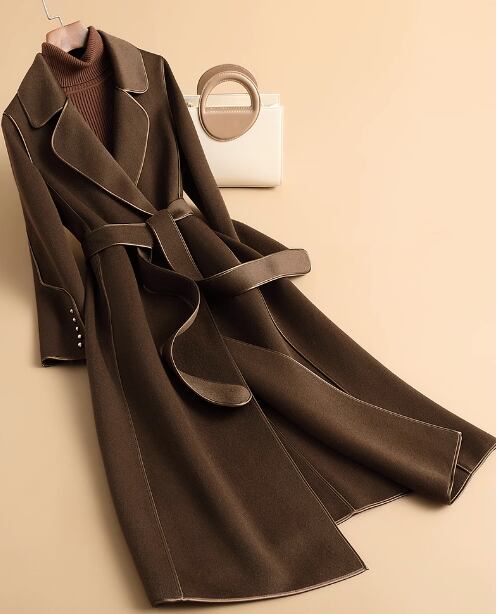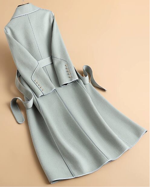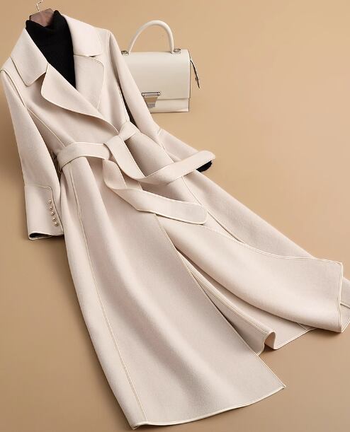2023年秋冬新作両面カシミアコートレディースロングヘップバーンスタイルハイエンド 100% ウールコート