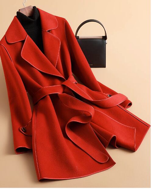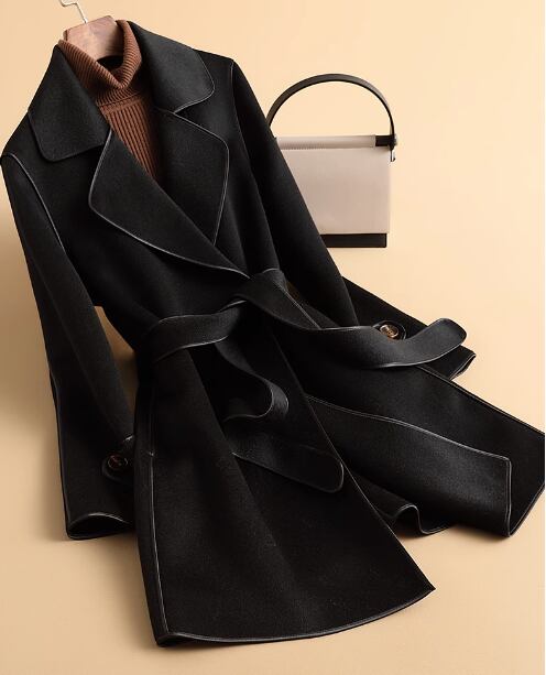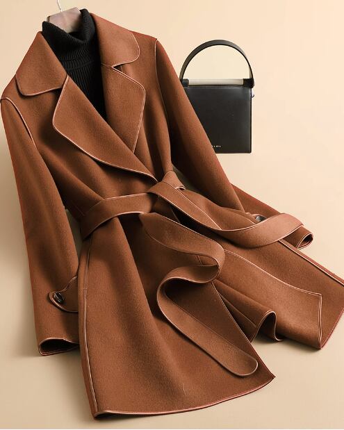 両面カシミヤコートレディースミドル丈2023年秋冬新作スモールハイエンドスーツウールジャケット