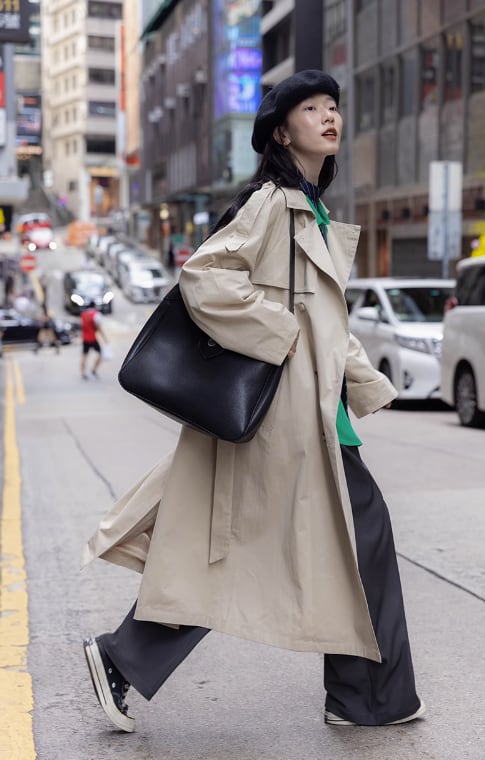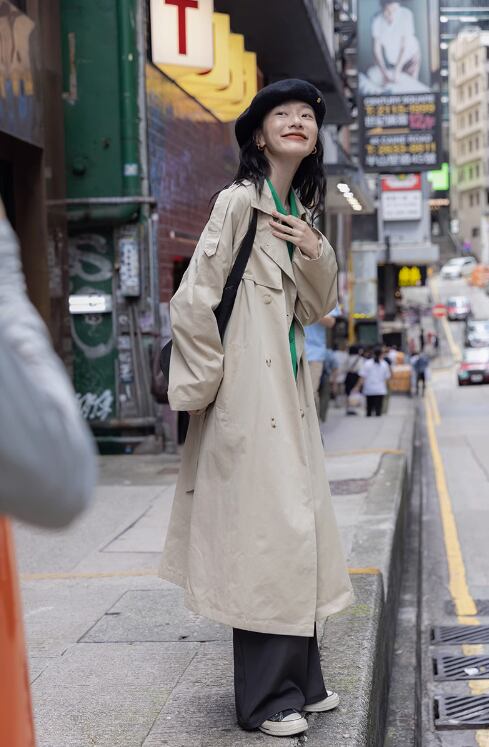 韓国スタイルのトレンチコートは、ルーズなシルエットとラグジュアリーなデザインが特徴です。プチサイズの方にもぴったりなサイズ展開も魅力的ですよ。