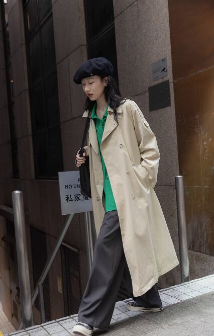 ロングトレンチコート、レディーススタイル、2023、新品、韓国スタイル、ルーズ、ラグジュアリー、プチスタイル、カジュアルコート