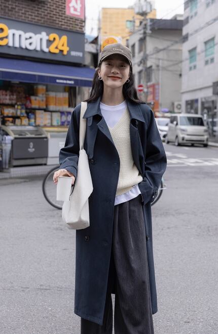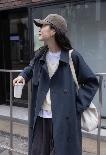 トレンチコートジャケット、女性用ニューオータムスタイル、豪華なブリティッシュスタイルトップ、スモールサイズ、ミドルレングスコート