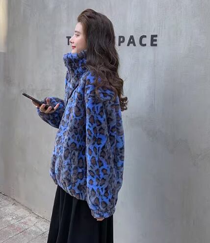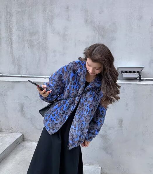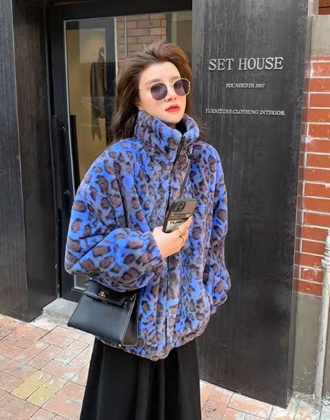 レトロな香港スタイルヒョウ柄ラムウールジャケット女性用ショートファーウィンタールーズウォームジャケットウサギぬいぐるみコート