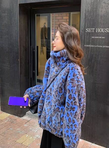 レトロで可愛らしいヒョウ柄のジャケット。香港スタイルのデザインで、女性らしさと個性を引き立てます。