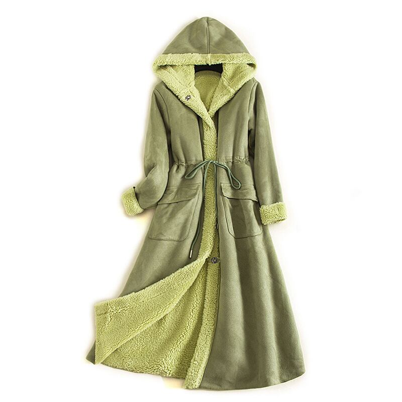 ビッグネーム輸出注文外国貿易オリジナルオーダー割引レディース秋冬フード付きウエストスエードパーティクルフリースコートジャケット