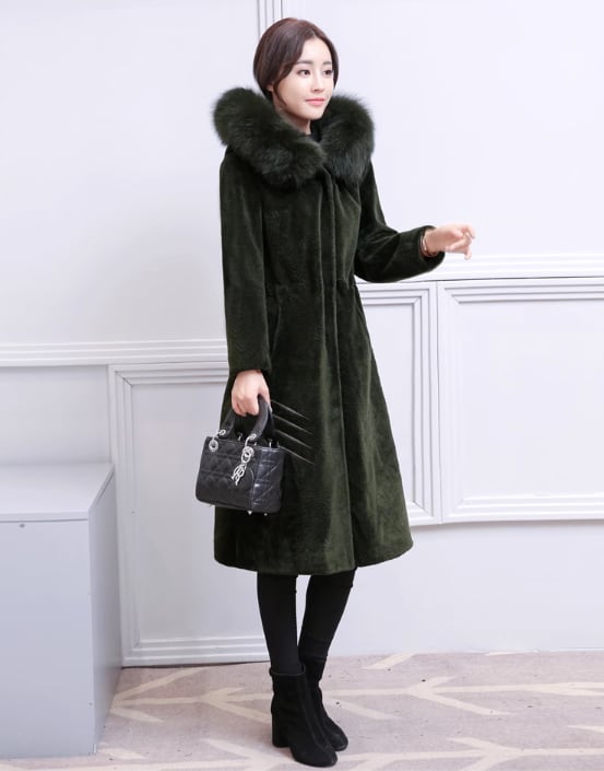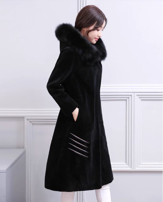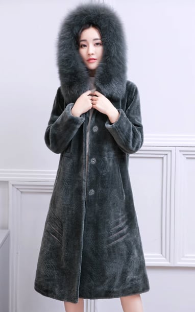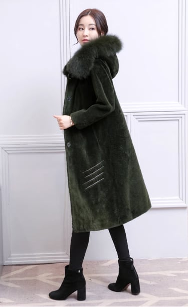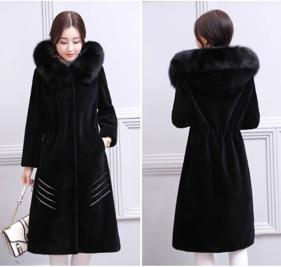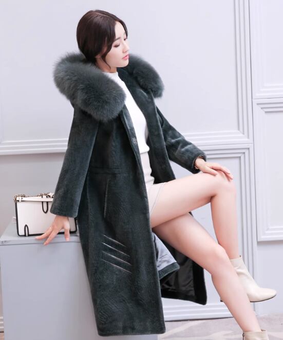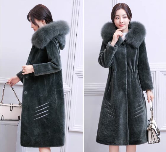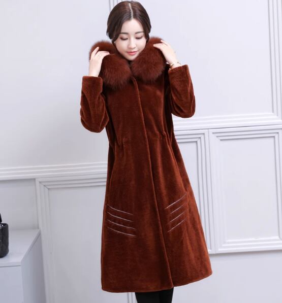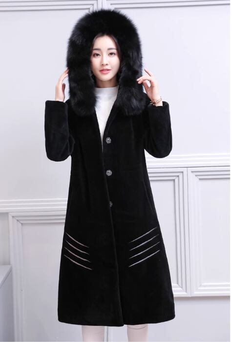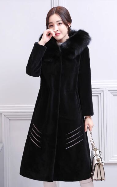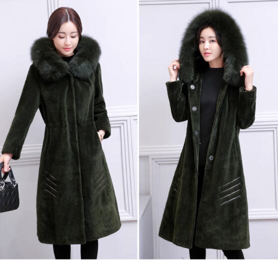 ウールコート 2017秋冬新製品レディースミドル丈フォックスファーカラーフード付きファッションシープスキンファージャケット