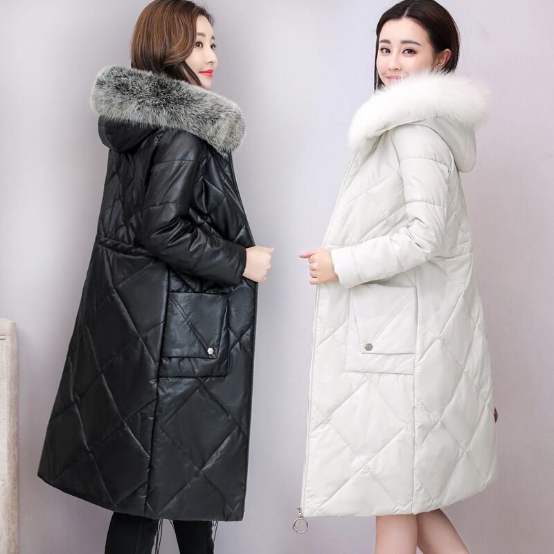 リアルフォックスファービッグファーカラーレザーコートダウンパッド入りジャケット女性2022ニュートレンドファッション防風ウォームレザージャケットジャケット