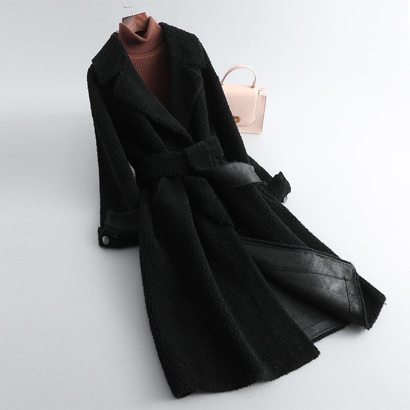 ピュアウールシープスキンフリースコートミドルレングスファーオールインワンラムファーコートレディース2022冬ニュースタイルスリムフィット