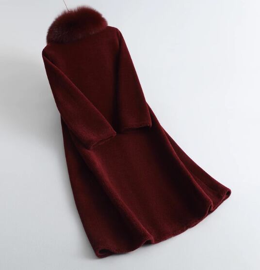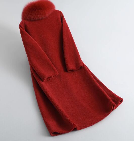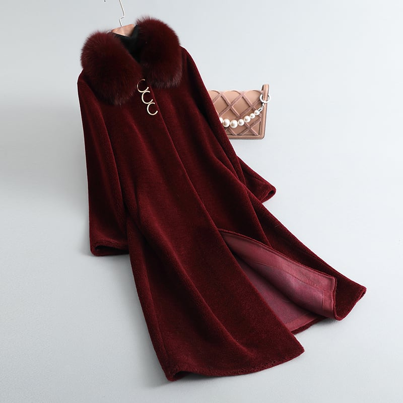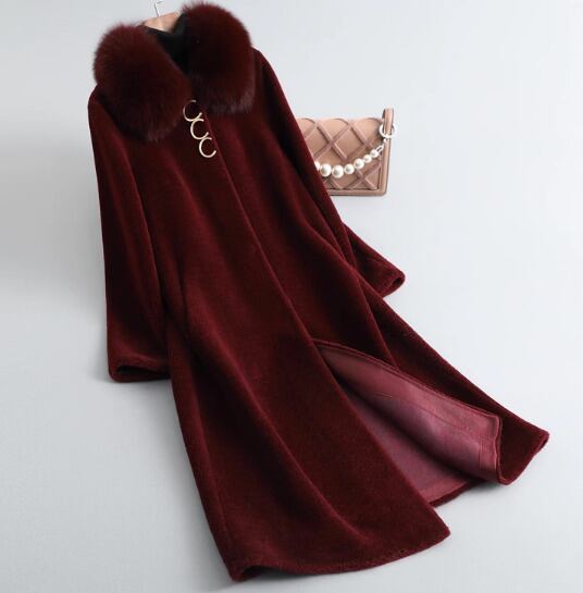 ふわふわの暖かさとエレガントさを兼ね備えたHainingシープスキンフリースコート、女性用ファー、一体型ファー、ロングスタイル、2023年、ニュースタイル、中高年マザー、フォックスファーカラー。贅沢な天然シープスキンとフォックスファーを使用し、完璧な一体感を実現しました。自信を持ってお手に取っていただきたい逸品です。