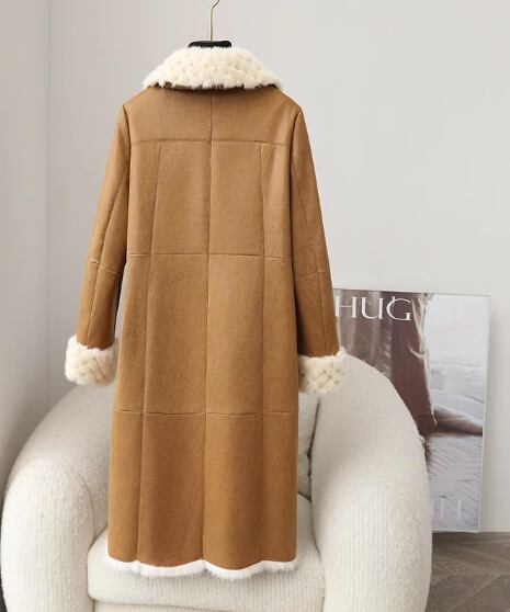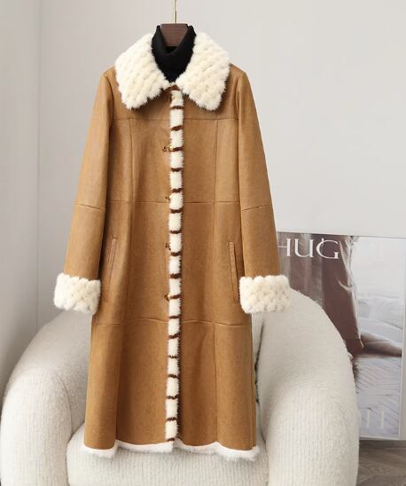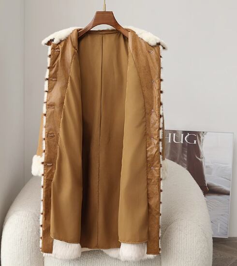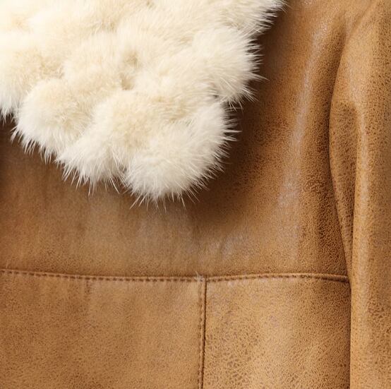 海寧ライト高級ミンクファージャケット、レザーカジュアルラビットファーファーオールインワンジャケット、ママスタイルファーコート