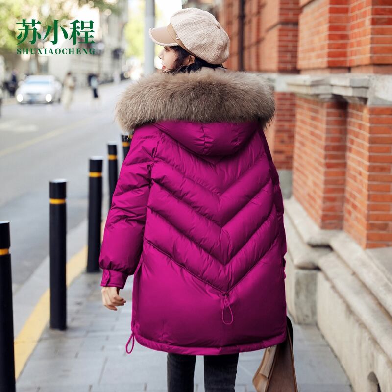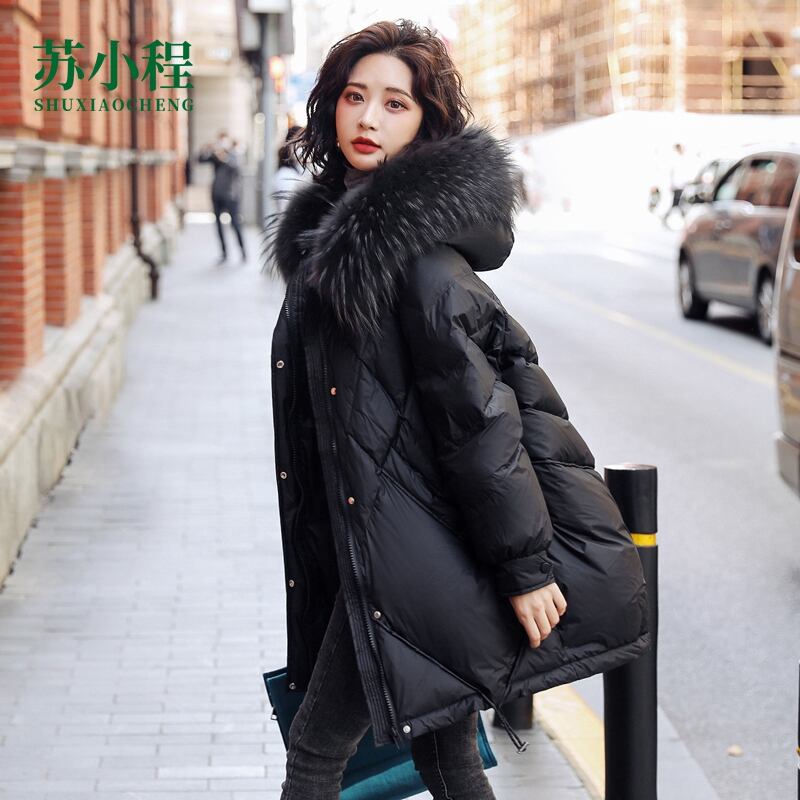 女性用ダウンジャケット2022年新作冬ファッションビッグファーカラーミドル丈プラスサイズAラインルーズパッド入りジャケットトレンディ