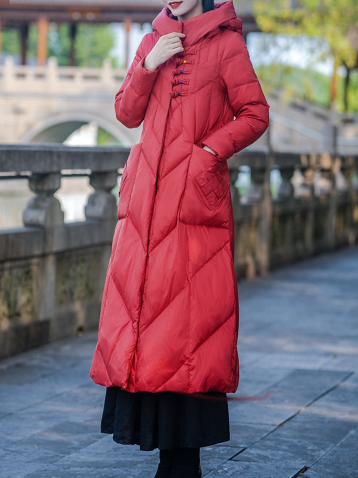 エスニックスタイルレトロバックルフード付きのロングジャケットが新登場しました!ホワイトダックダウンを90%使用し、厚手であたたかいのに重さを感じさせません。長袖のデザインで手首までしっかりと保温し、寒い季節でも暖かさをキープ。ウォームなレッドジャケットは、周りと差をつけたいあなたにぴったりの一着です。