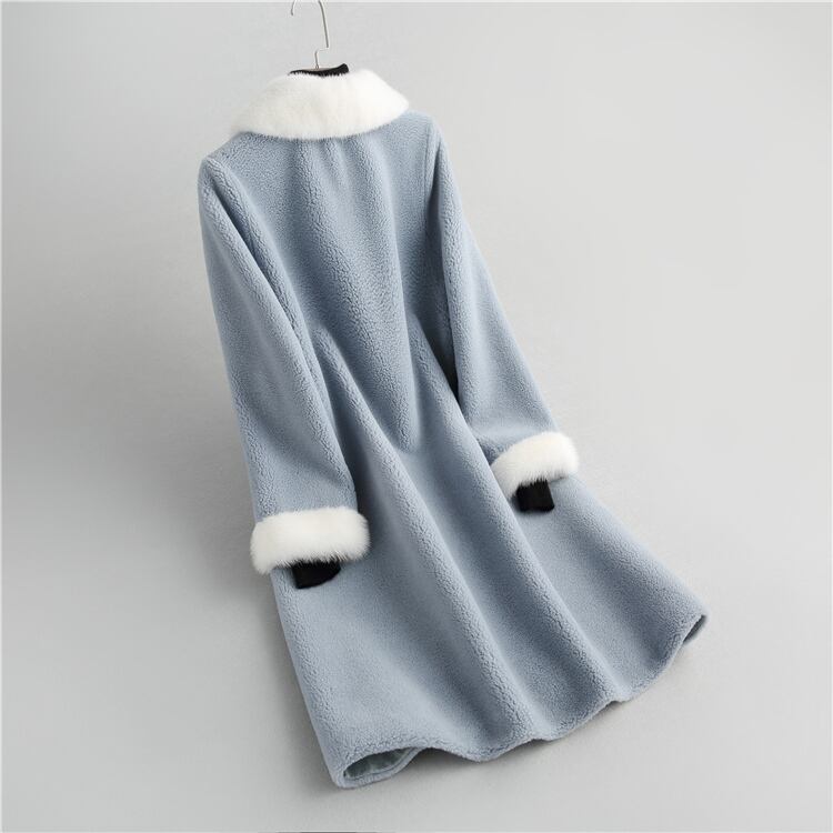 2023 秋冬新粒子シープフリースコートレディースミドル丈ファー一体型ミンクカラーヘイニングファージャケット