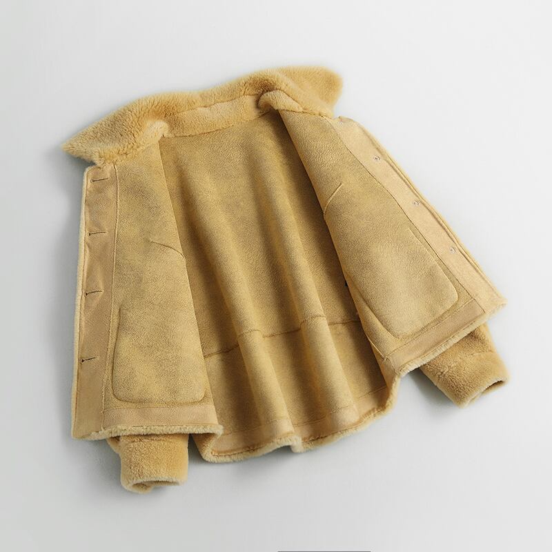 シープスキンフリースコート、ファーオールインワンジャケット、レディースショートハイニングファー、2023年秋、ニューグレインフリーストップ