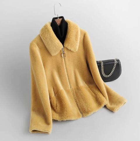 シープスキンフリースジャケット、女性用ショーツ、2023年秋冬服、ニューテンペラメント、グラニュラーウールファーコート、オールインワンファー、レディース