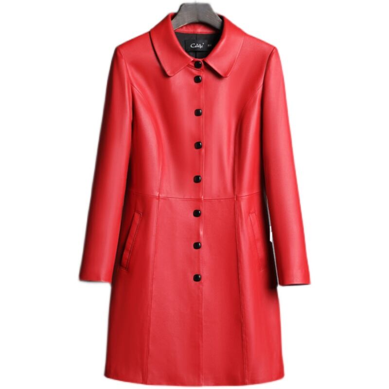 海寧レザージャケット、高級女性用ミドル丈スタイル、スリム、ソリッドカラー、工場直販、レザー、シープスキン、秋服、ニュースタイル