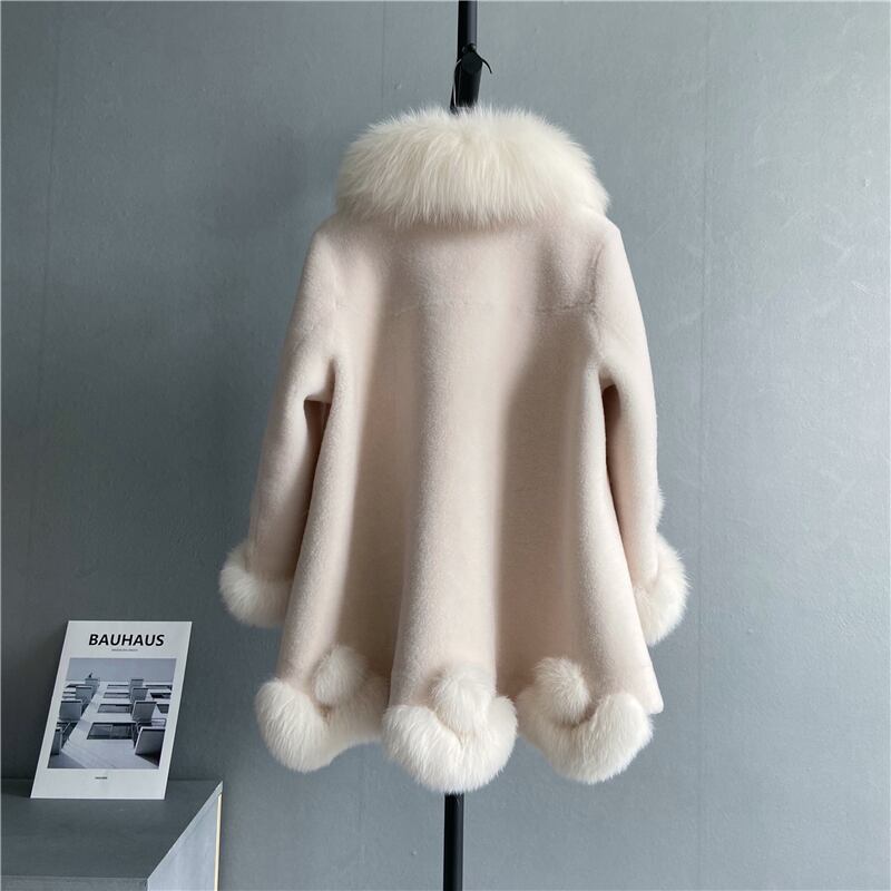 2023年冬新作スタイル、アンチシーズン輸入オーストラリアウール、シープスキン、フォックスファー、オールインワンの厚手で暖かみのあるミドルレングススタイル