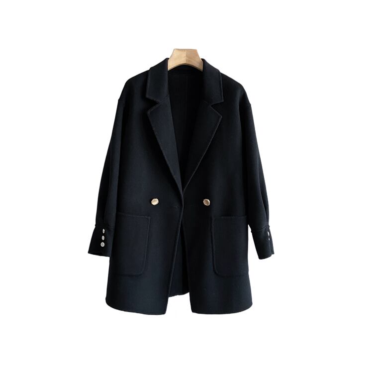 2023年新作ソリッドカラー両面ウールコート、ハイエンドスタイル、ミドル丈、スリムスーツカラー、秋冬ウールコート、レディース