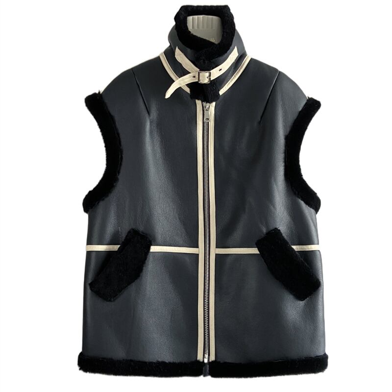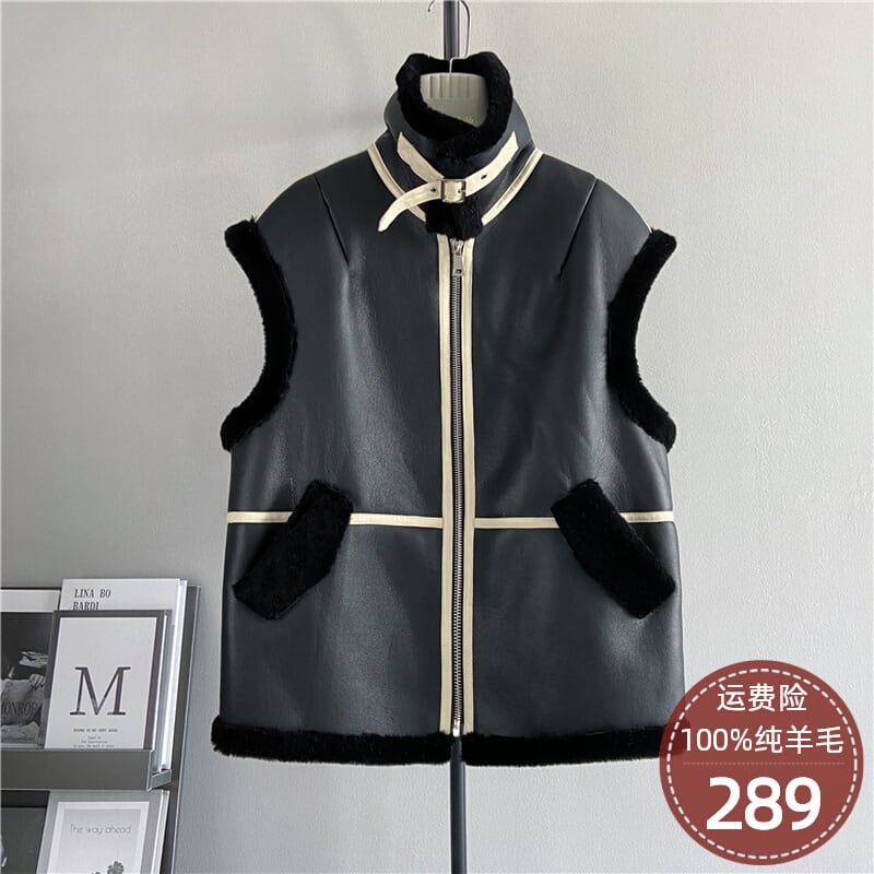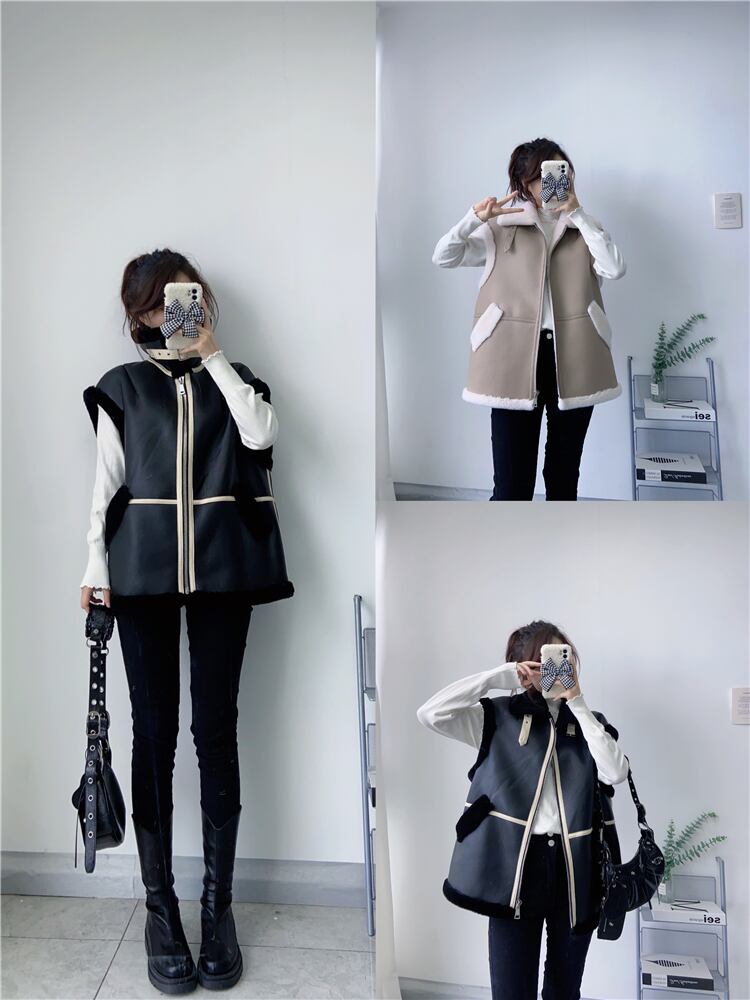 Haining Dongxin スタンドアップカラーシープスキンフリースベスト多用途コンポジットファー一体型厚手ショートジップオートバイベストトレンディ