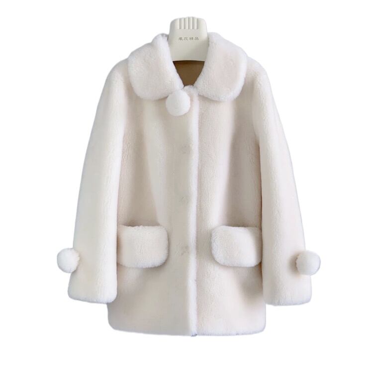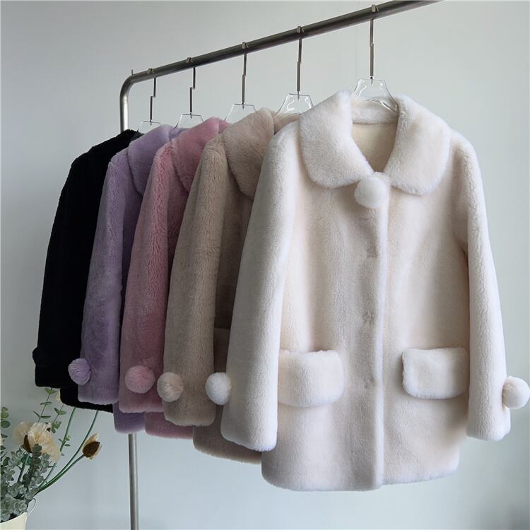 秋冬新作ボールピュアウールジャケットコート、合成ファー、一体型シープフリース、大粒ウォームラムウール