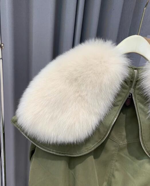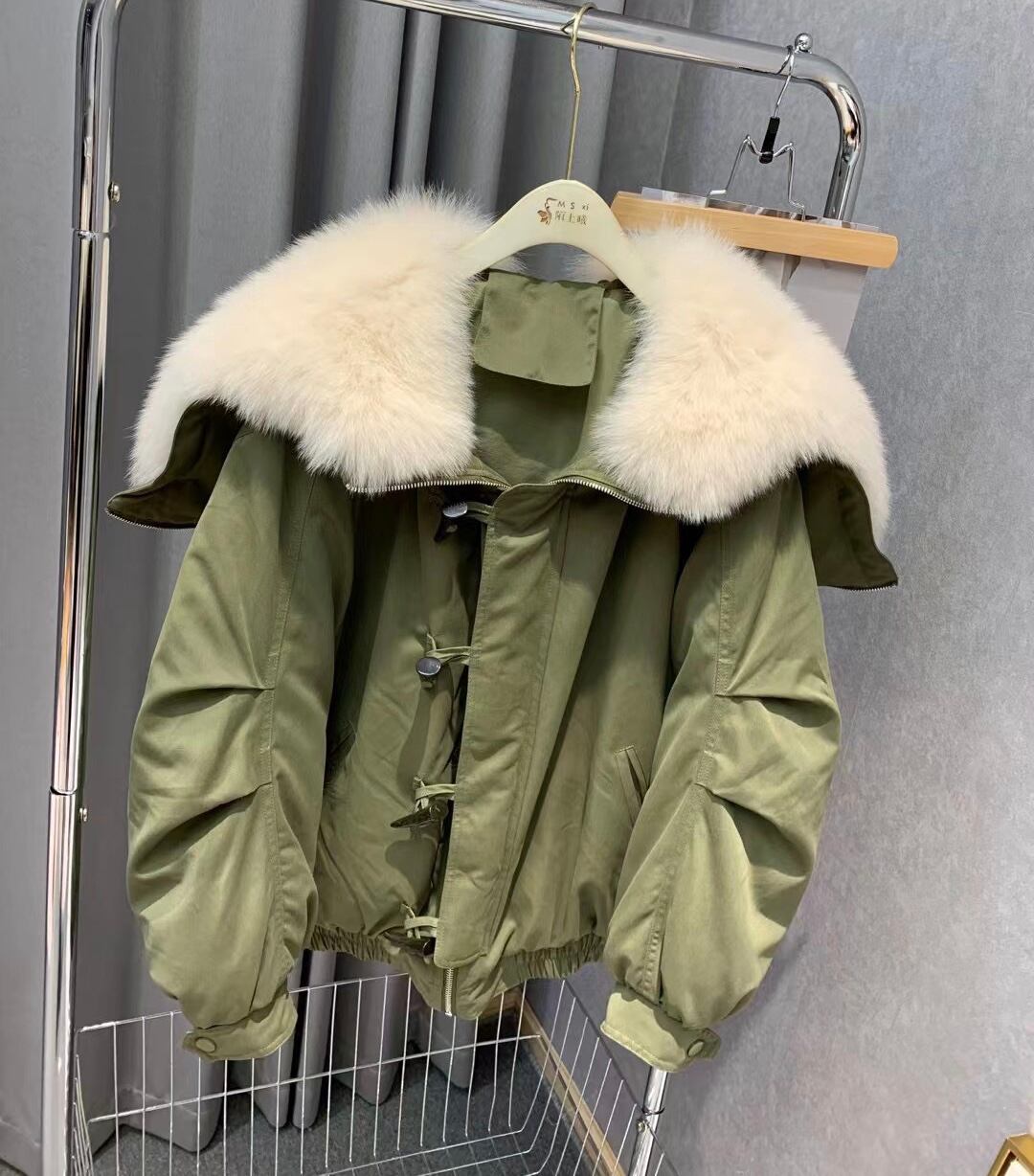 このジャケットは、ハイニングファーやグースダウンが贅沢に使用されており、防寒性に優れています。さらに、韓国のルーズなデザインがトレンド感を演出し、おしゃれさも兼ね備えています。
