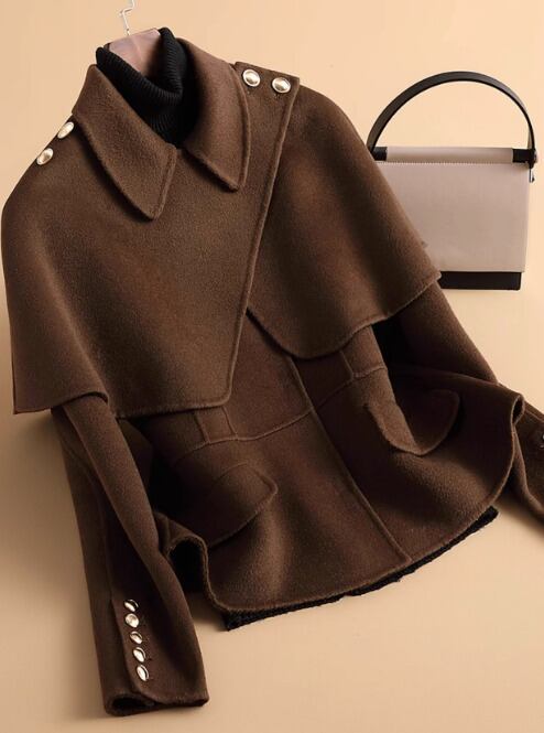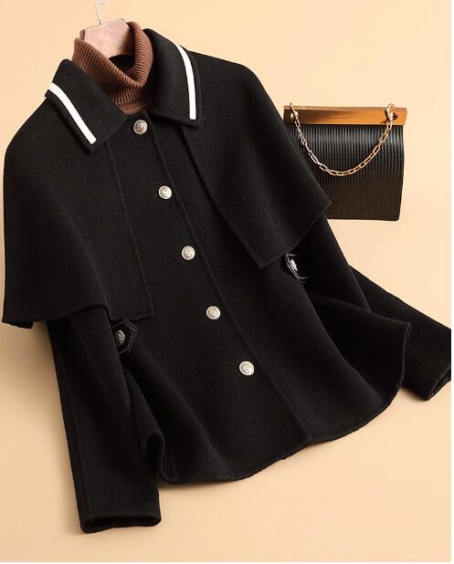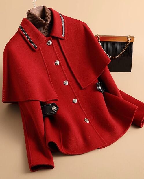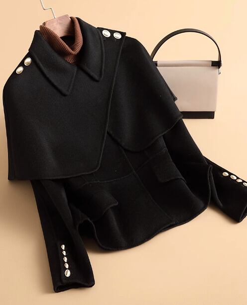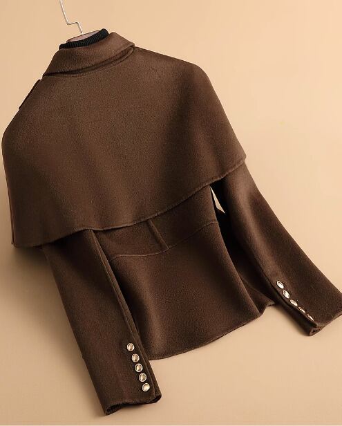 両面カシミアコート、女性用ショートスタイル、秋冬、ニュースタイル、スモールマントル、ツーウェア、ウールコート、ジャケット