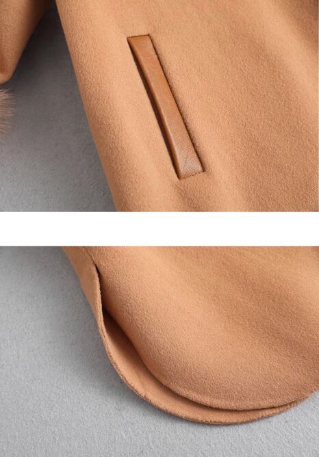 2023年冬新作韓国両面カシミヤコートレディースミドル丈フォックスファーカラーハイエンドリアルウールウールジャケット