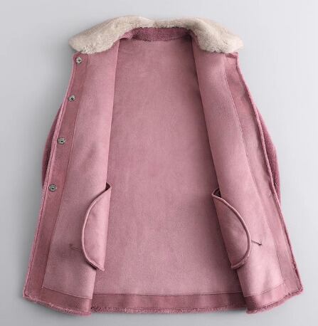 暖かみと高級感が溢れる新作シープスキンファージャケットが登場しました。女性用ミドル丈で、ミンクファーカラーがエレガントな華やかさを引き立てます。中高年のマザーにもぴったりなデザインで、シンプルながらも最高級の仕上がりです。