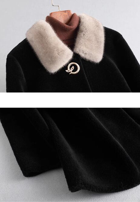 新作シープスキンファージャケット、女性用ミドル丈、ミンクファーカラー、中高年マザー、オールインワンファーコート、本物