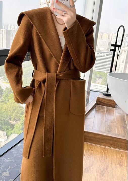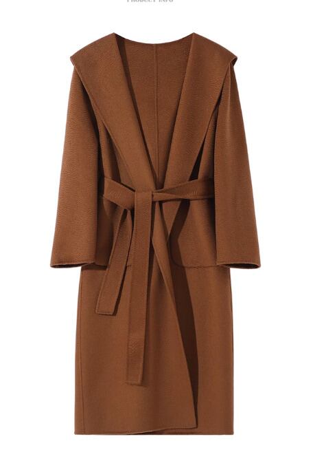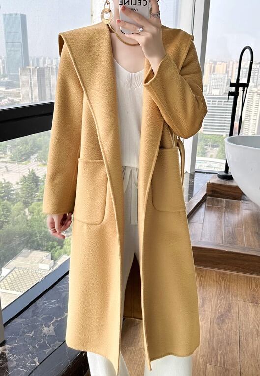 プレミアムウォーターリップル両面カシミアコートレディース 23秋冬新作フード付きミドルレングスウールオーバーニージャケット
