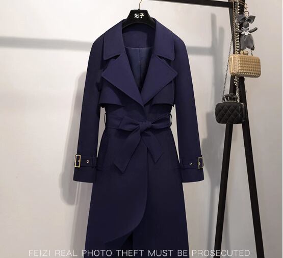 ブラックミドル丈トレンチコートレディース春秋新作ライトラグジュアリースタイルおしゃれスリムヘップバーンジャケット