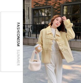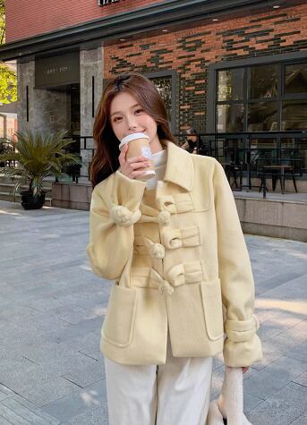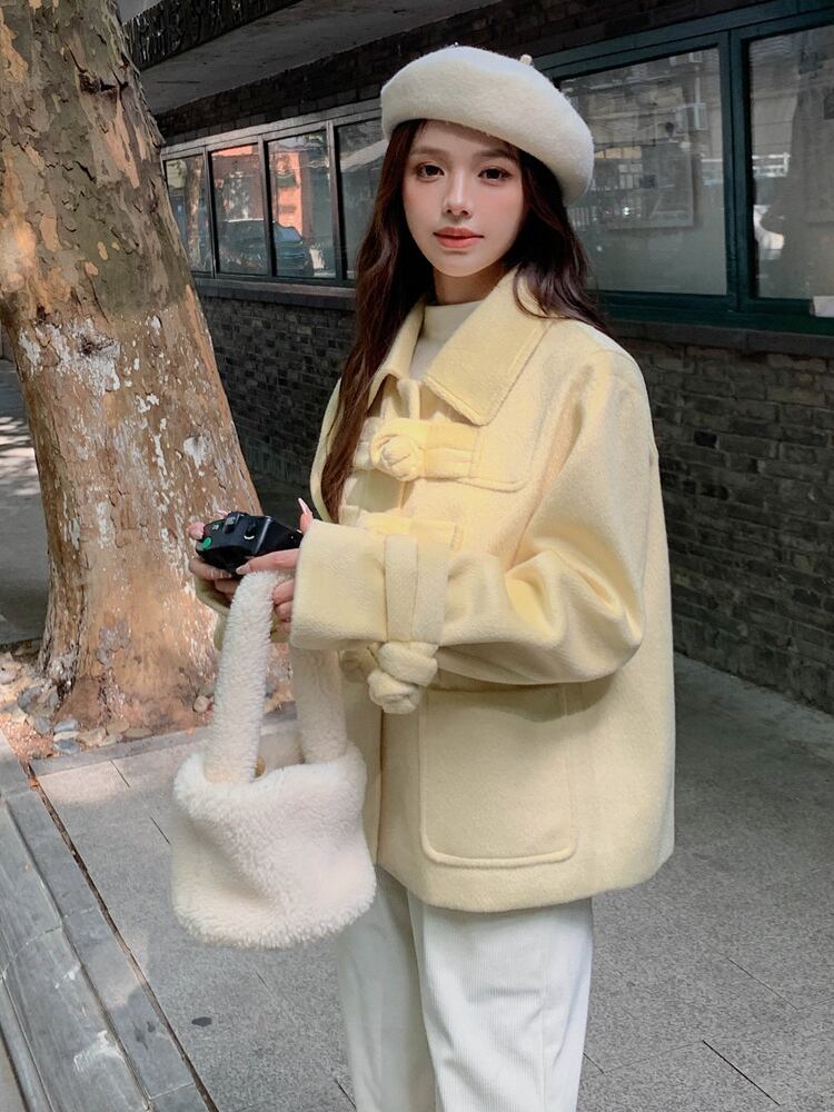 ミルクイエローウールコートレディース2023年秋冬新作ショートウールコートフレンチスタイルジェントルスタイルスイートトレンディスタイル