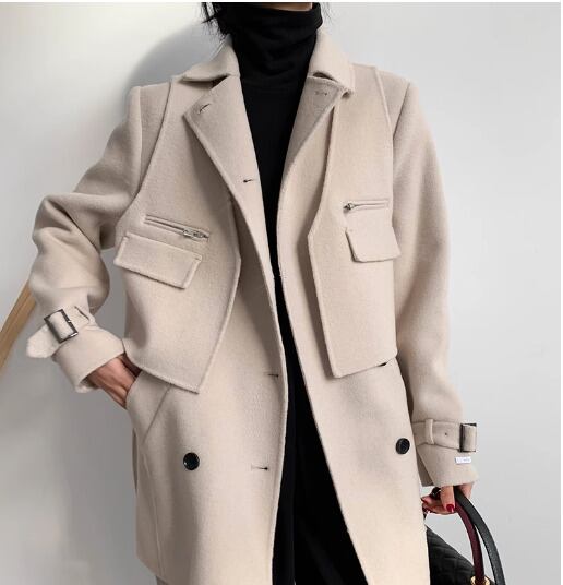 限定599ハイエンドツーピースベストジッパーエレメント両面カシミヤコートウールコート女性韓国版20新品