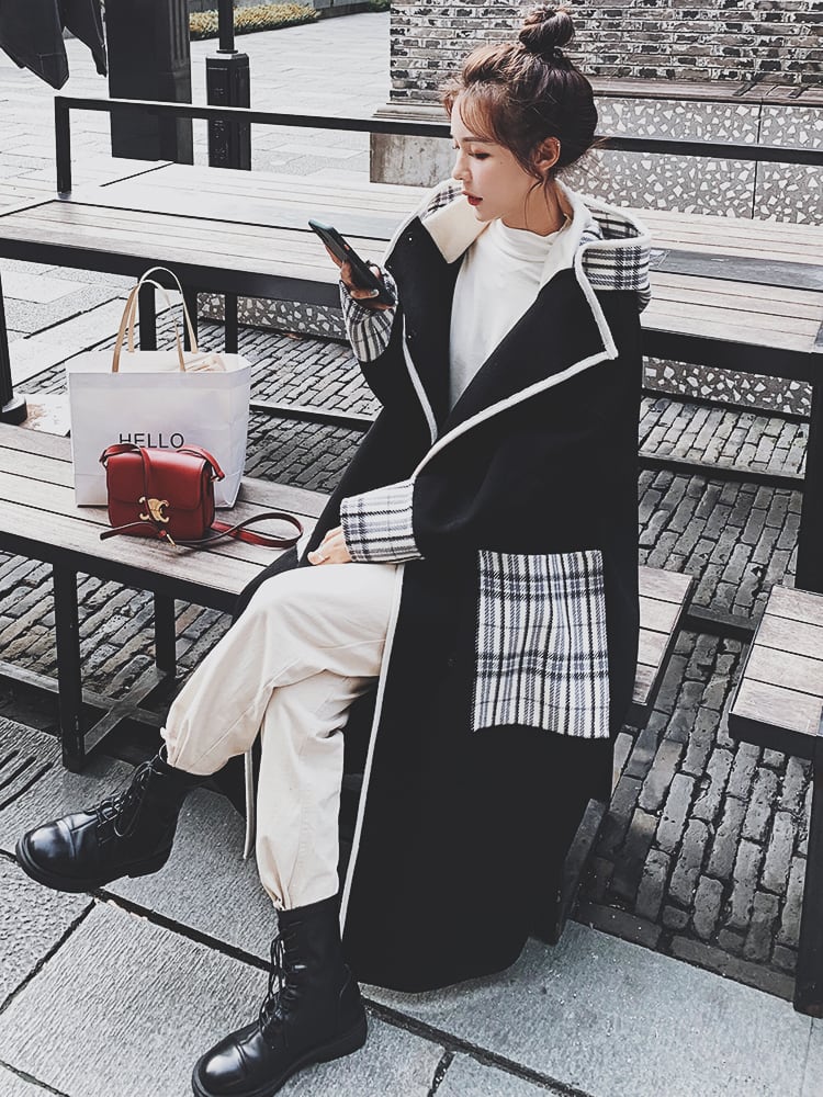 ブラックヘップバーンプラスサイズファットmm韓国製ミドル丈チェック柄2023新作ウールコートジャケット妊婦用秋冬服。大人の女性にふさわしい上品なデザインで、流行に敏感なあなたにぴったりの一着です。チェック柄がトレンド感を演出し、スタイルアップ効果も期待できます。妊婦さんでも着やすいデザインで、お腹周りをやさしく包み込みます。秋冬のシーズンに重くなりがちなファッションにアクセントを加え、おしゃれな雰囲気を演出します。