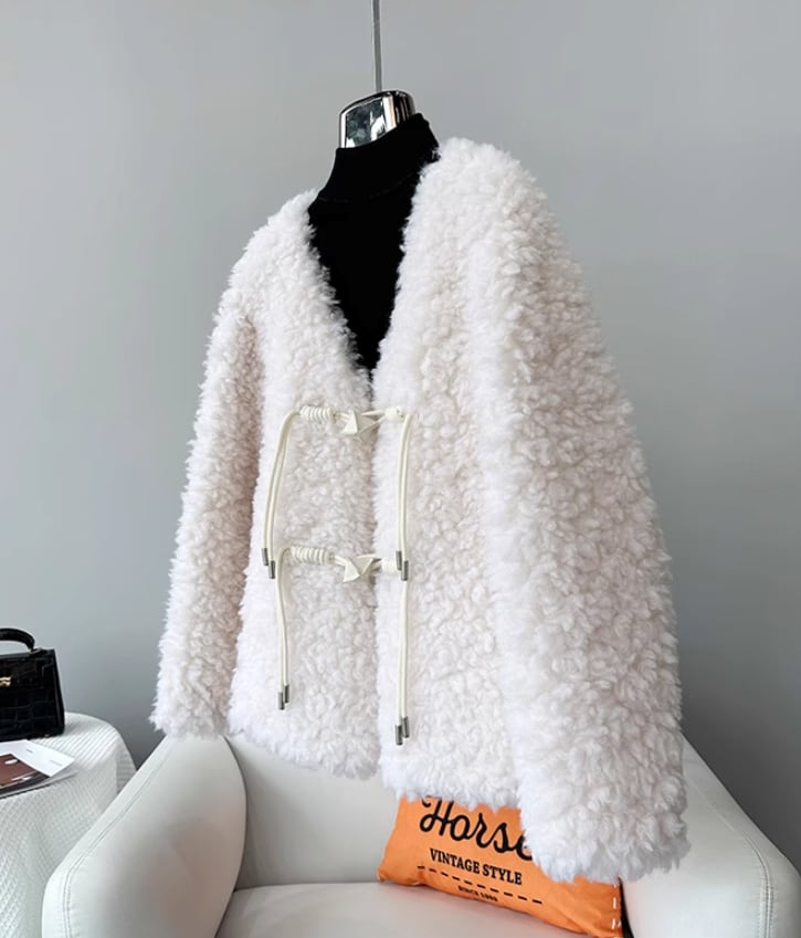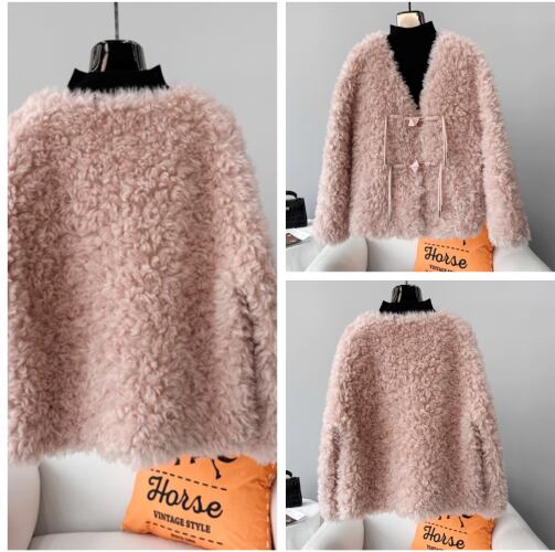 ラムウールカーリーウールジャケット、2023年秋冬一体型レディースファー、新品、厚手、チャイニーズスタイル、フリース、ショートスタイル、レディース