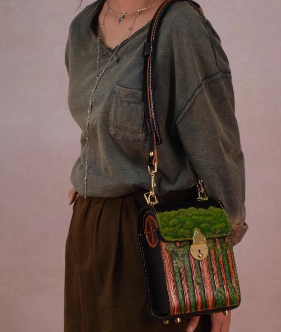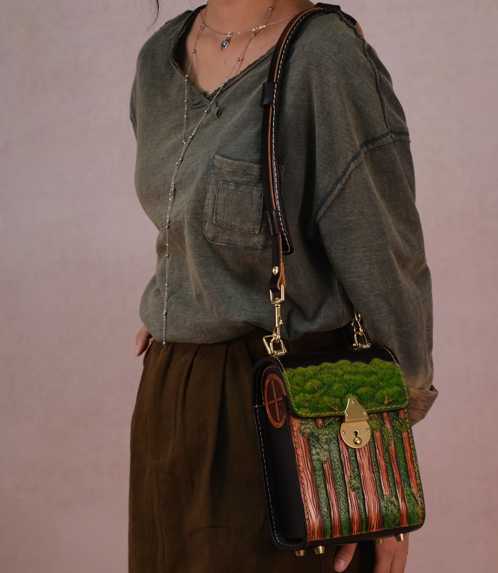 イタリアから輸入したベジタブルタンニンレザーを使用した[小さなツリーラインショルダー]。自然の力で育まれた素材にこだわり、独特な風合いと深みのある色味を実現しました。一つ一つの製品には、革職人の熟練の技術と情熱が込められています。