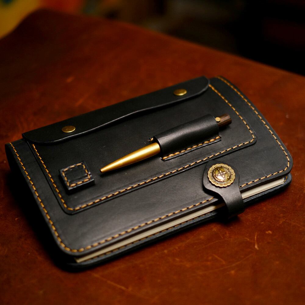 [A5ルーズリーフブック] イタリアから輸入したベジタブルタンニンレザーで、プロマックスを持ってペンを挿入できます。