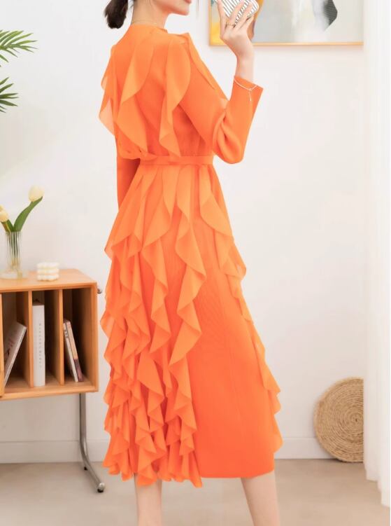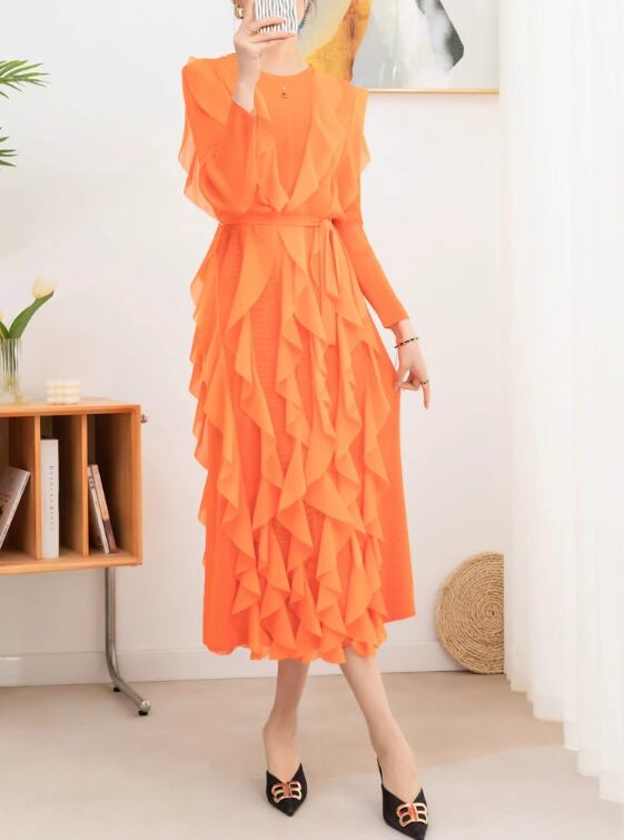 この女性用洋風フリルレースプリーツドレスは、ミヤケソリッドカラーが高級感漂う一枚。美しいフリルとレースのデザインが、女性らしさを引き立てるアイテムです。プリーツ加工が施されたスカートは、動くたびに揺れるたびに上品な雰囲気を醸し出します。ワンピースでありながらも、ソリッドカラーが品の良さを演出し、どんなシーンでも活躍すること間違いなし。