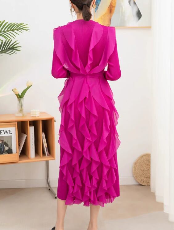 女性用洋風フリルレースプリーツドレスミヤケソリッドカラー高級ソリッドカラーフェアリードレス